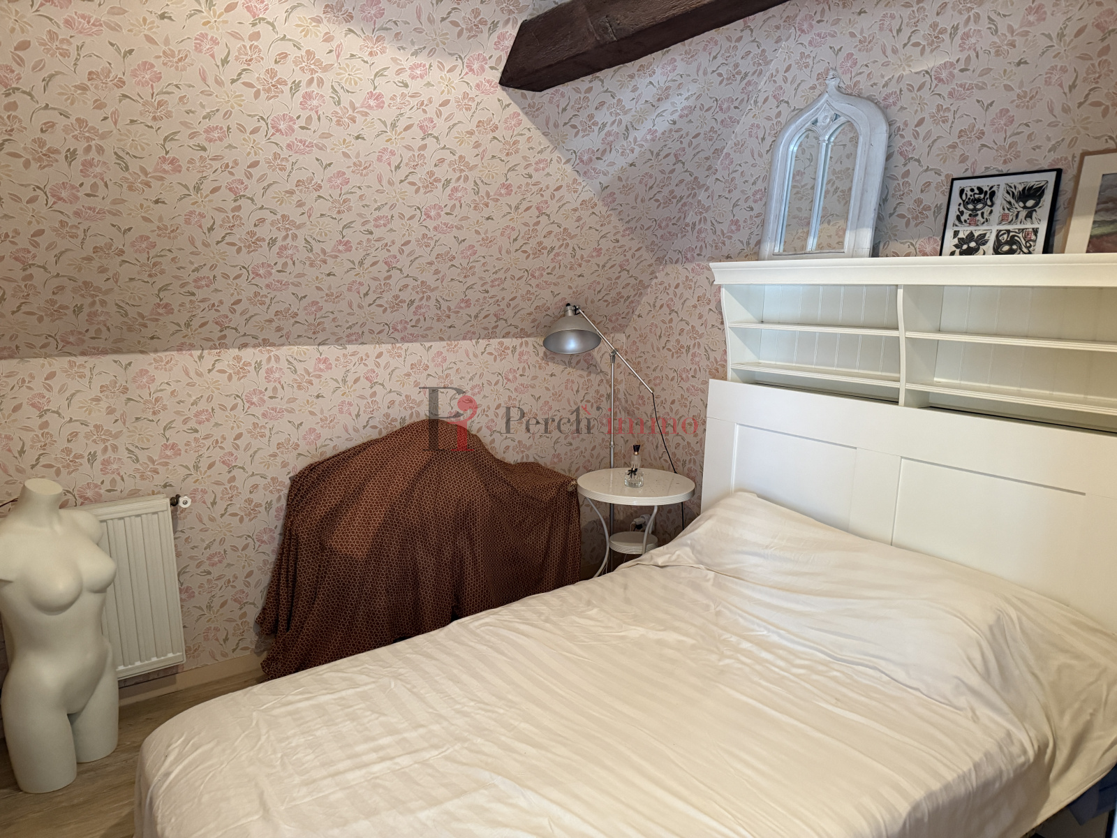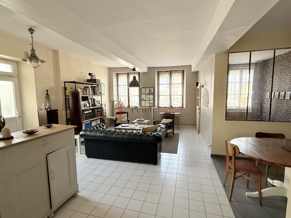 A quelques pas du centre-ville de Bellême, maison de ville avec vie de plain-pied comprenant: séjour salon ouvert sur une cuisine, petite pièce pouvant servir de chambre, salle d'eau,wc, chaufferie.