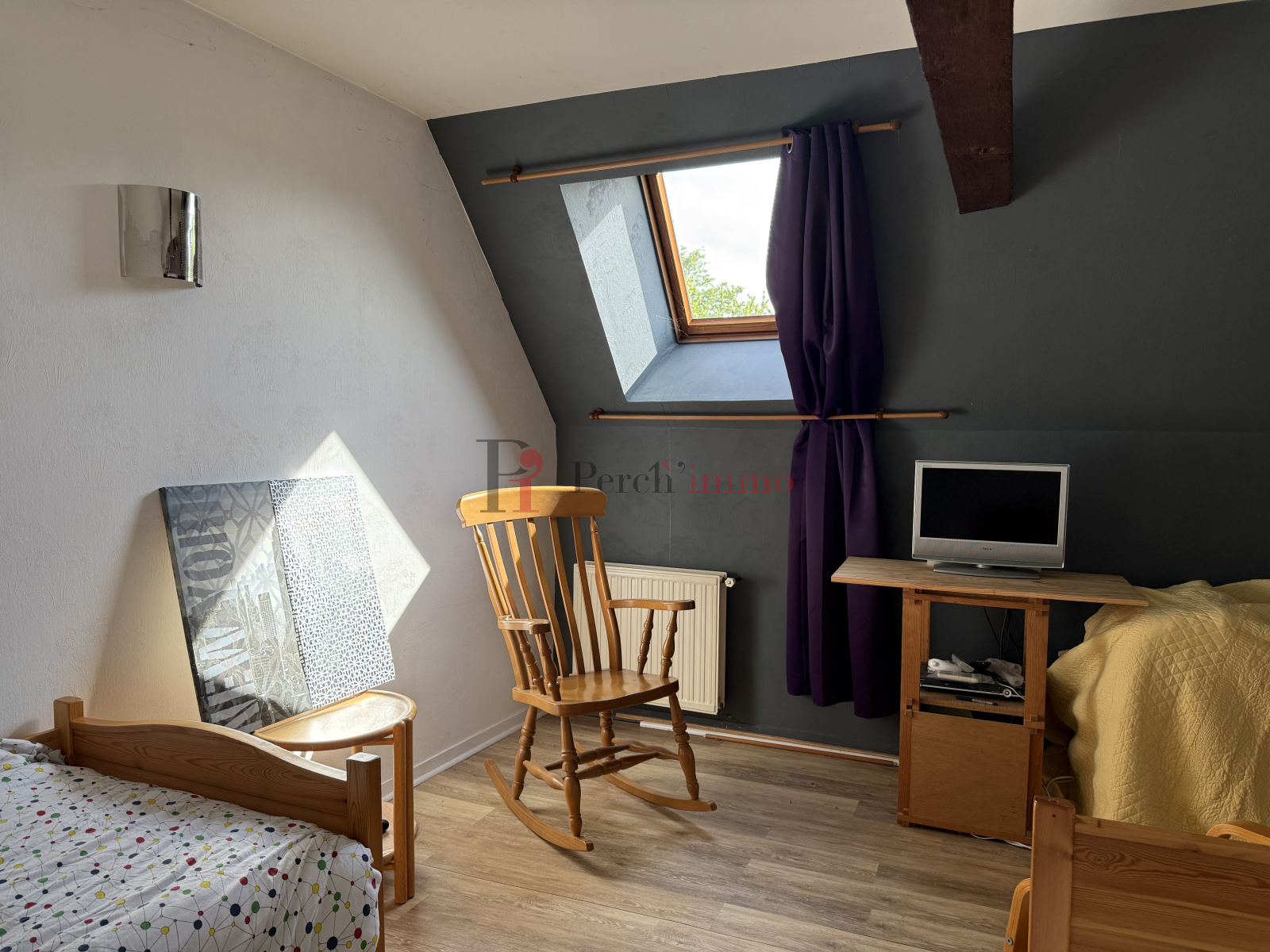 A l'étage, une pièce, et une chambre.