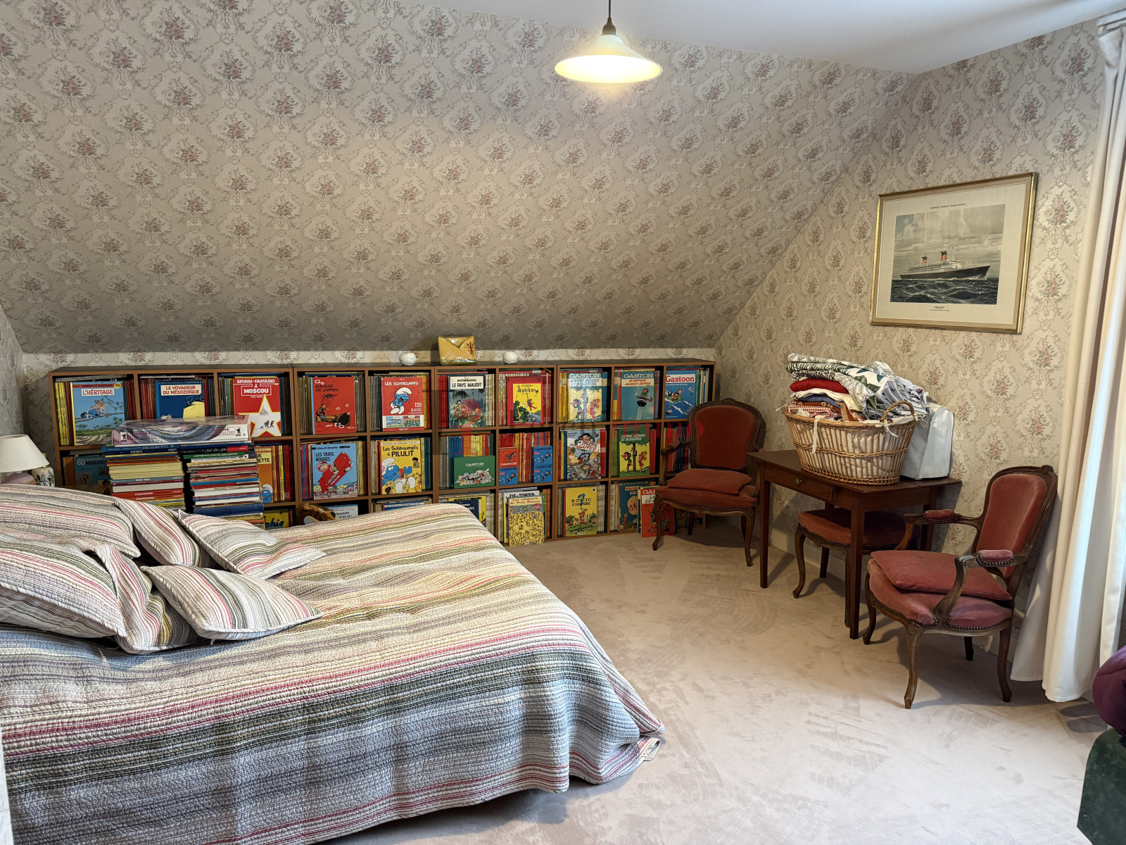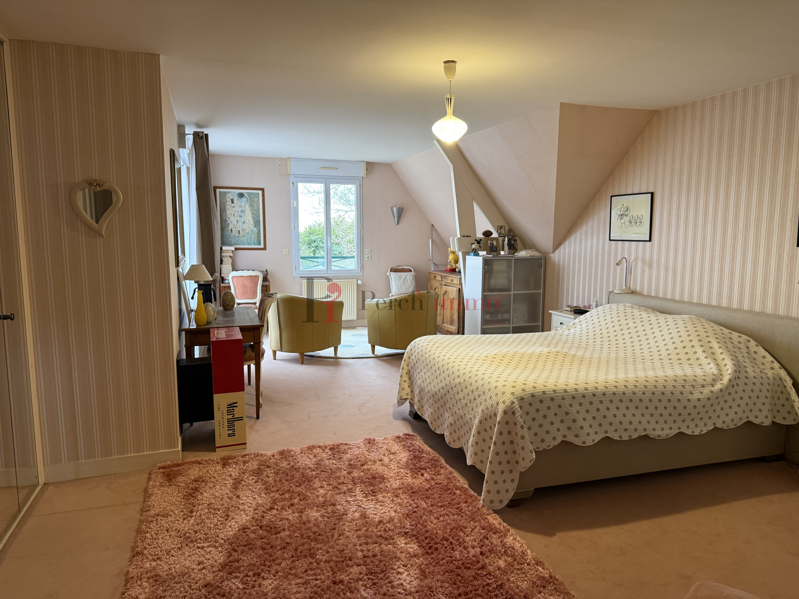 A l'étage, grande pièce palière, 3 grandes chambres (dont une de 30m²), bureau, salle de bain, wc.